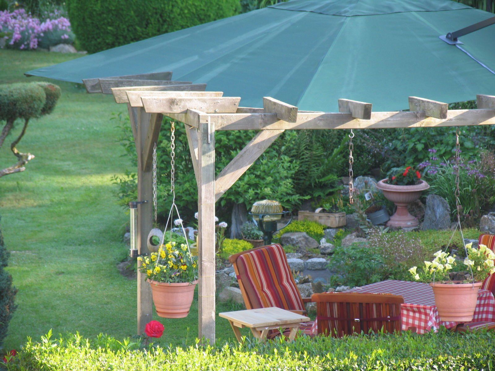 In unserem großzügigen Garten gibt es mehrere Sitzgruppen die jederzeit zum Entspannen einladen. Im Garten kann natürlich auch gegrillt werden. In unserem Garten steht eine Kletterwand, die auf eigene Verantwortung mit eigenem Equipment auch von unseren Gästen mitgenutzt werden kann. Entsprechende klettertechnische Kentnisse setzen wir somit voraus.